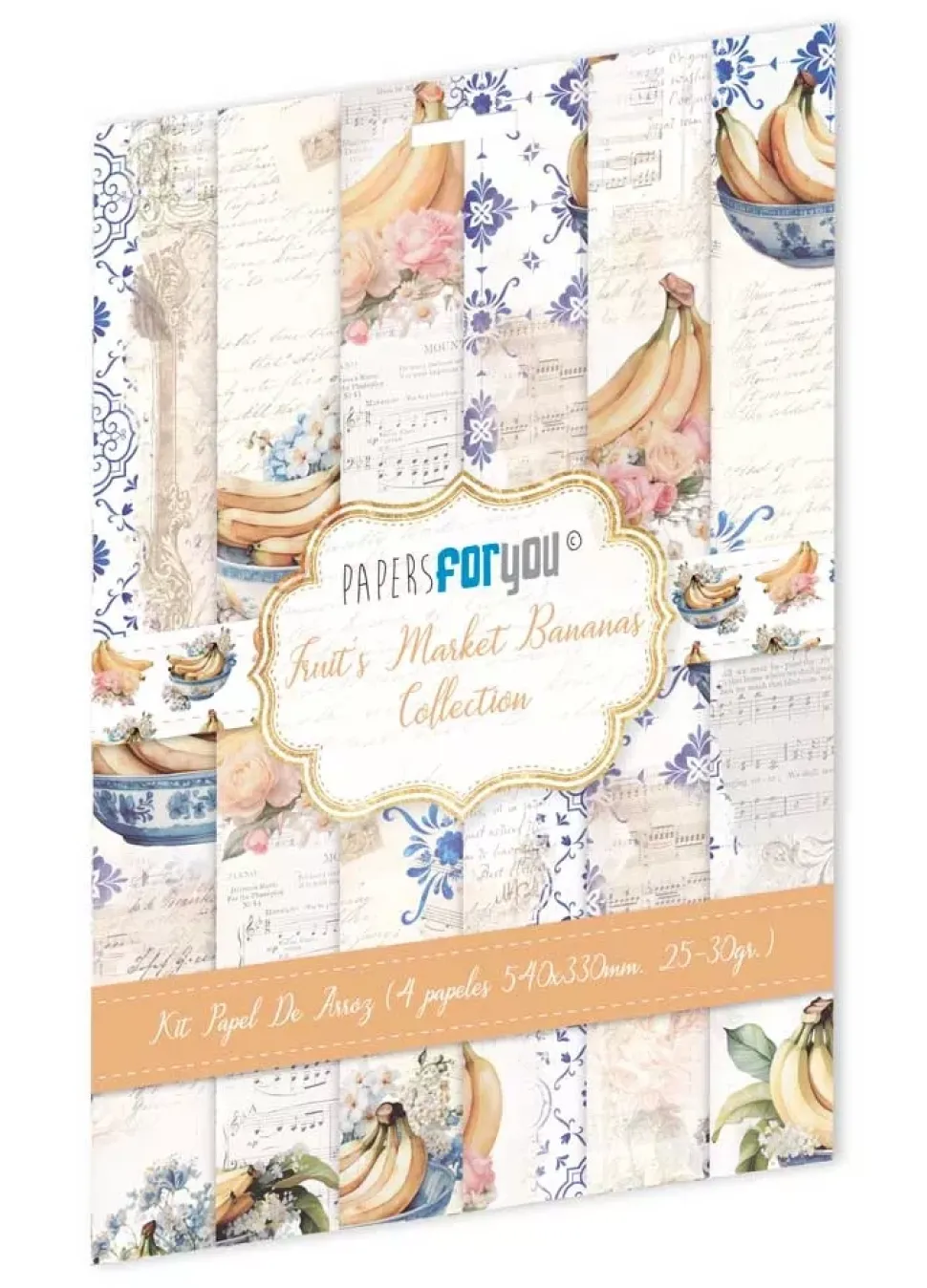 Kit 4 Papeles de Arroz Bananas Fruits Market PapersForYou 54x33cm