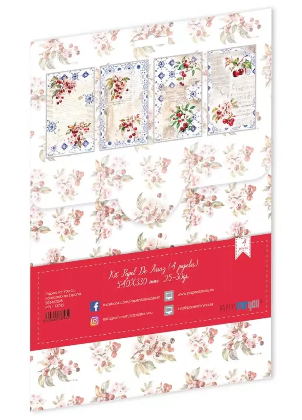 Kit 4 Papeles de Arroz Cherrys Fruits Market PapersForYou 54x33cm