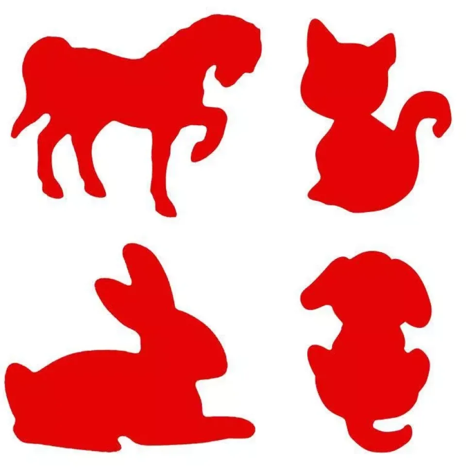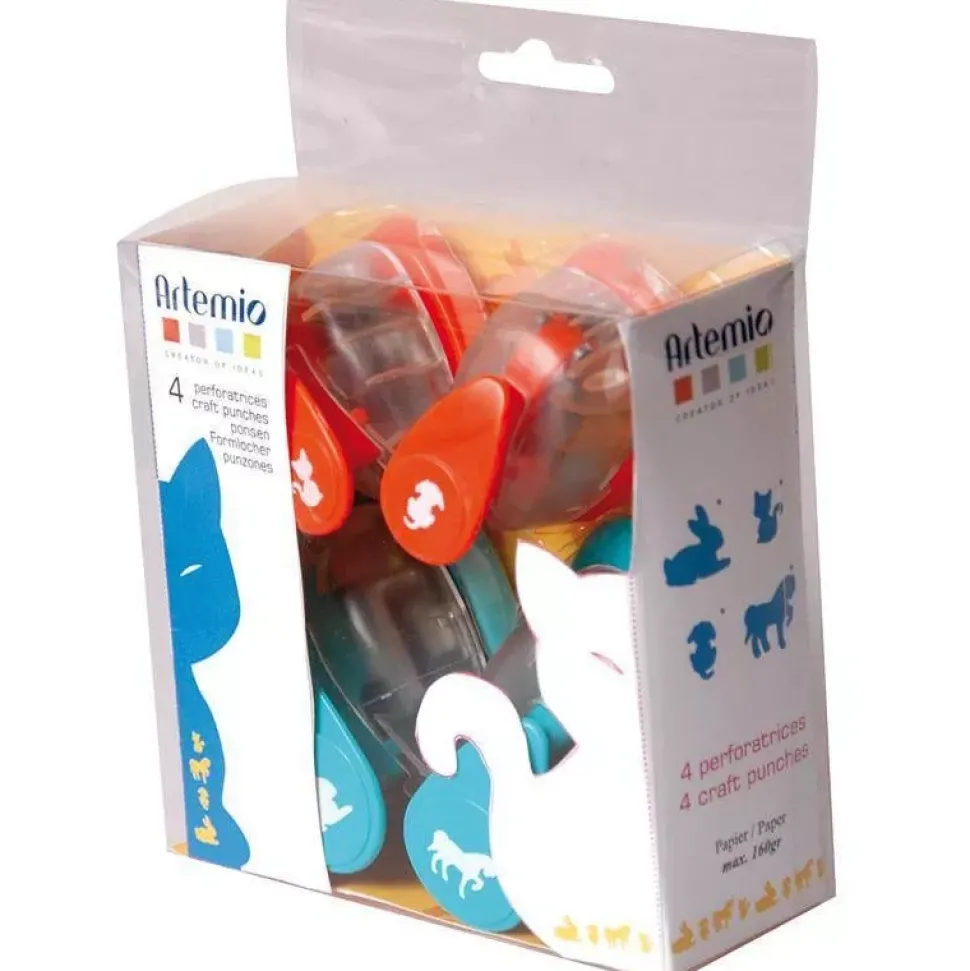 Kit de 4 perforadora con motivos diferentes: caballo, gato, perro y conejo.
