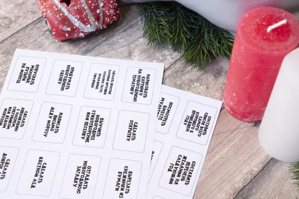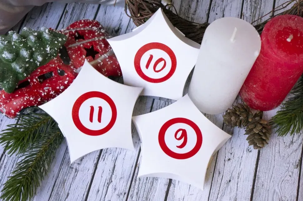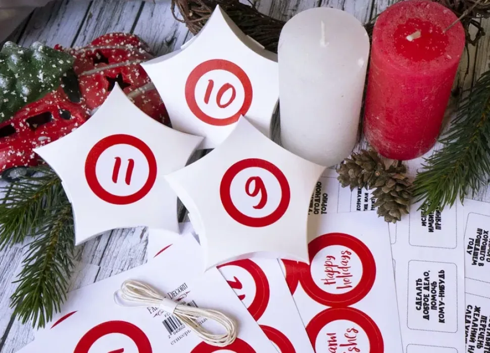 - En las cajitas que se incluyen en el set, puedes colocar adivinanzas, deseos, pequeños obsequios o pasteles. Organiza un interesante juego de aventuras para niños y adultos, o puedes colgarlos en un árbol de Navidad como decoración.