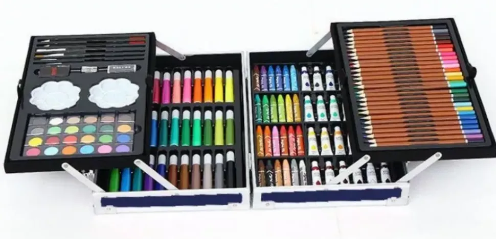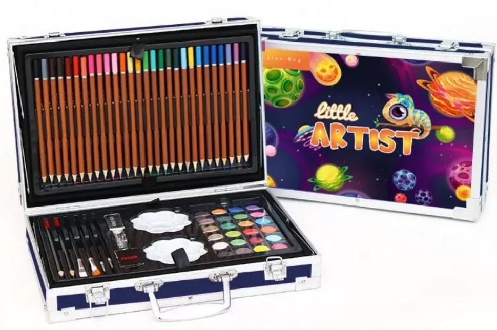 - Completo maletín de aluminio con 145 elementos artísticos para que los niños dejen volar su imaginación creando bonitos dibujos.