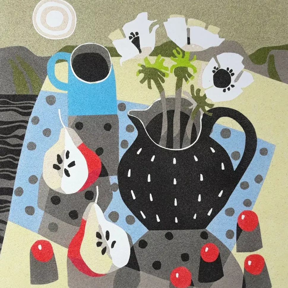 - Kit completo para pintar con arena de colores la obra Bodegón Naif Cerezas.