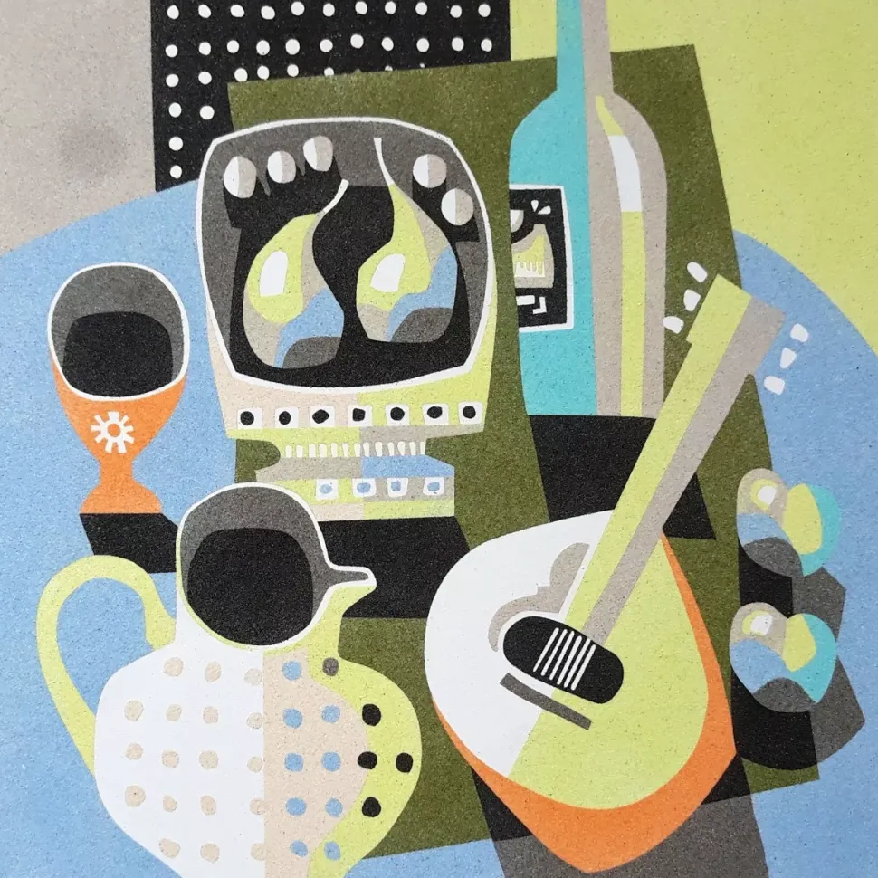 Kit Pintar con Arenas de Colores Bodegón Naif Guitarra Arenart 38x38cm