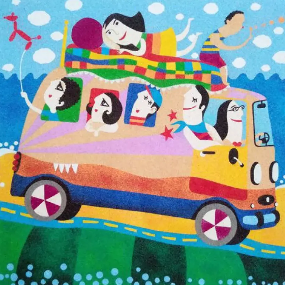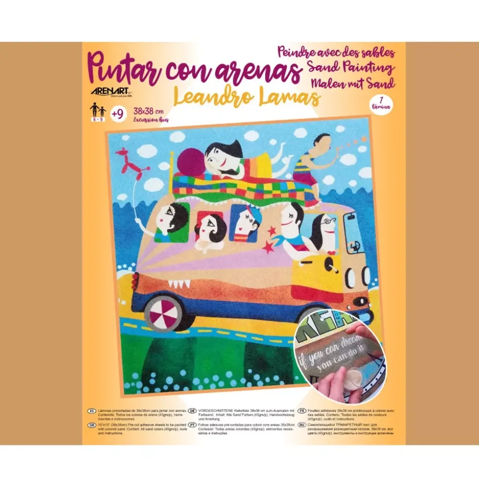 - Kit completo para pintar con arena de colores la obra Excursión Bus de Leandro Lamas.