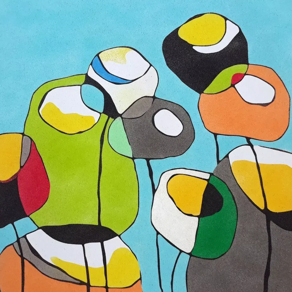 Los trabajos con arenas de colores nos ofrecen la original técnica de pintura sin pinceles. La creación de cuadros con arenas es una modalidad reciente, creada y desarrollada por ARENART, que permite la realización de obras de arte cuya calidad no resulta inferior a las técnicas pictóricas tradicionales.