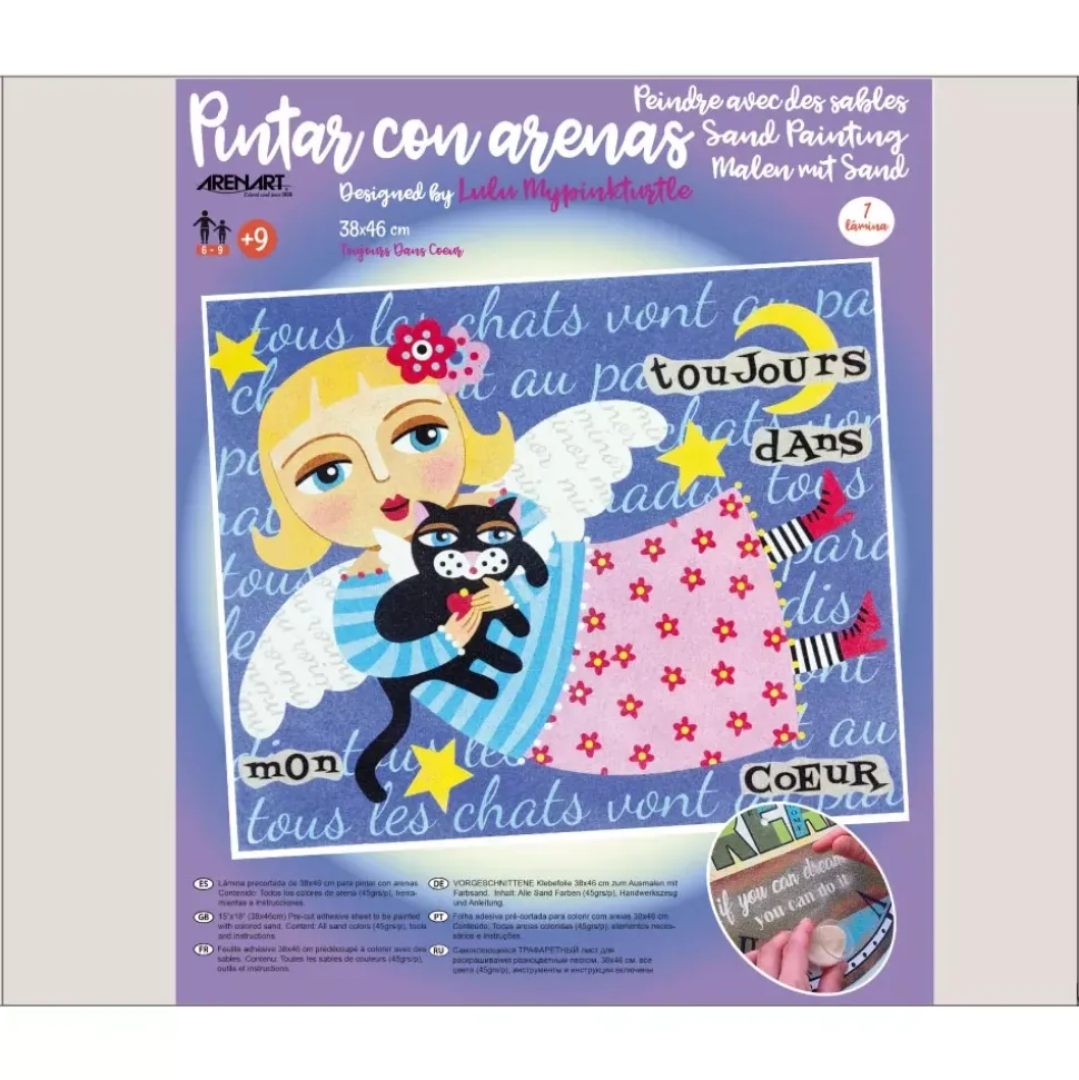 - Kit completo para pintar con arena de colores la obra de Toujours Dans Mon Coeur de Lulu Mypinkturtle.