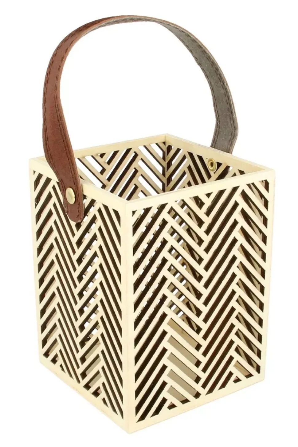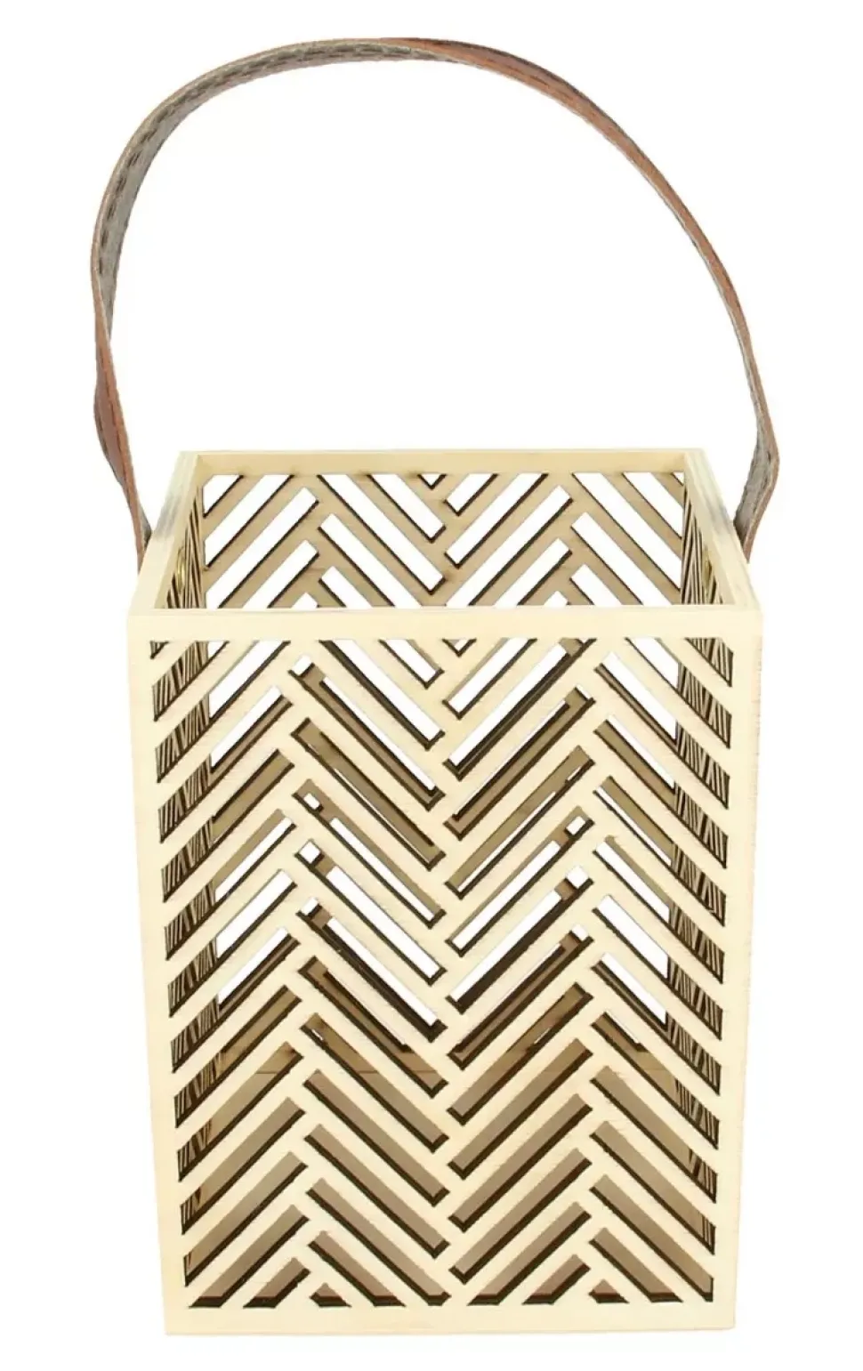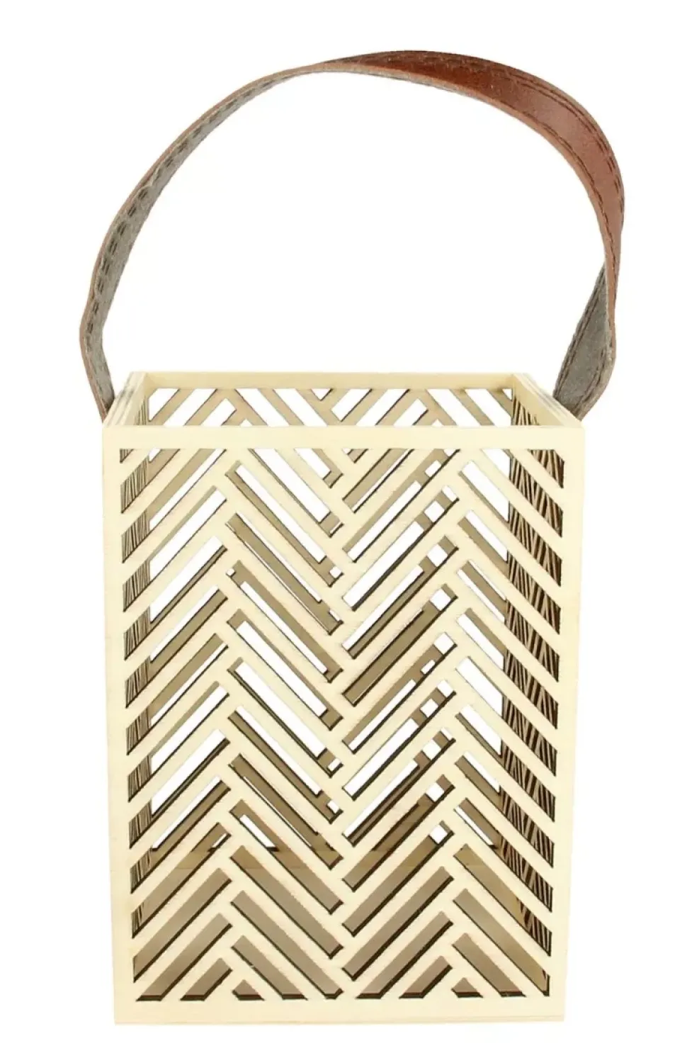 - Caja cuadrada calada para utilizar como una literna en la que puedes introducir una vela o luces led para crear un ambiente muy especial.