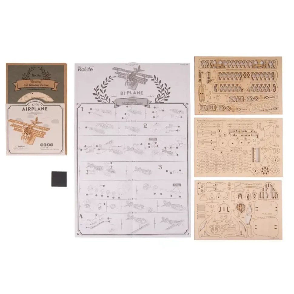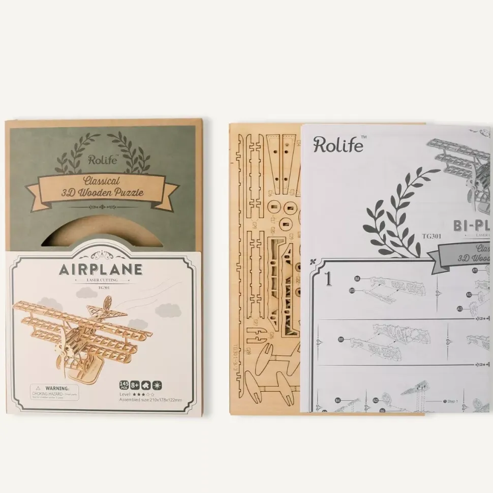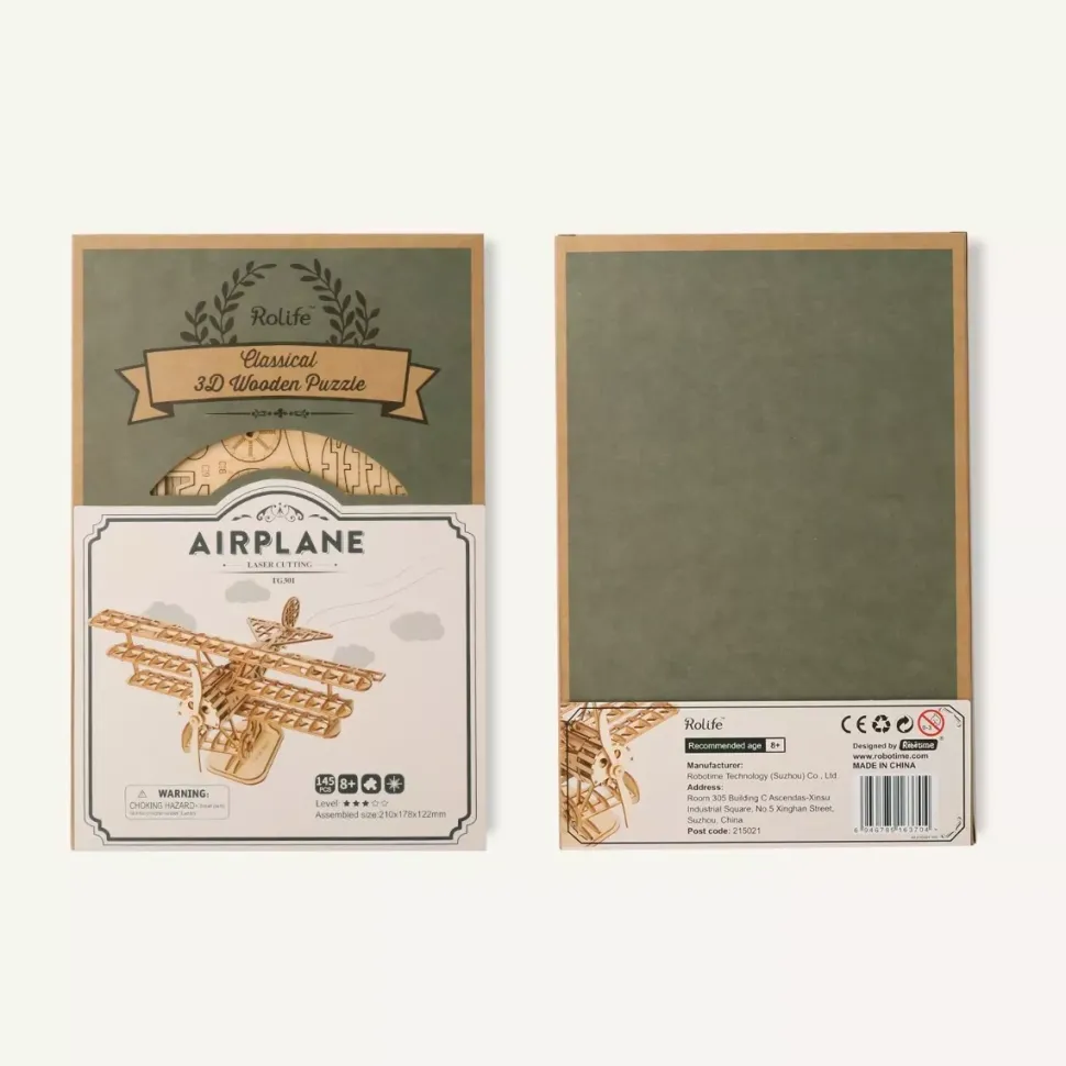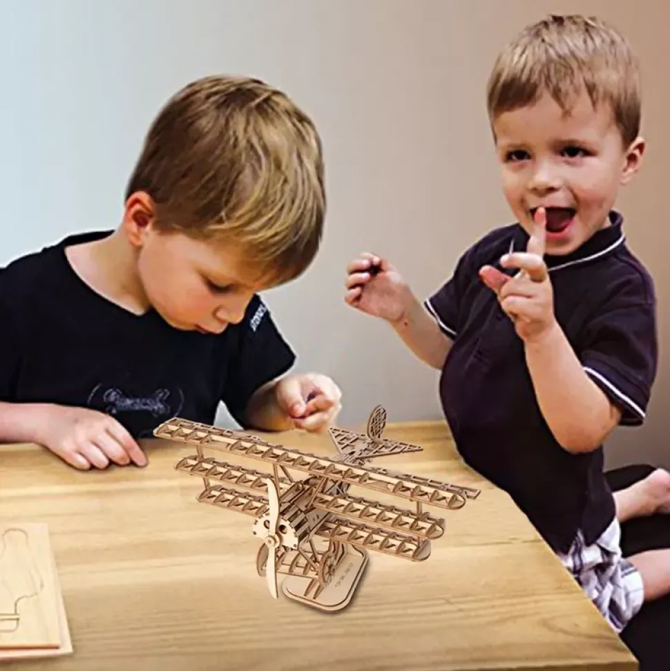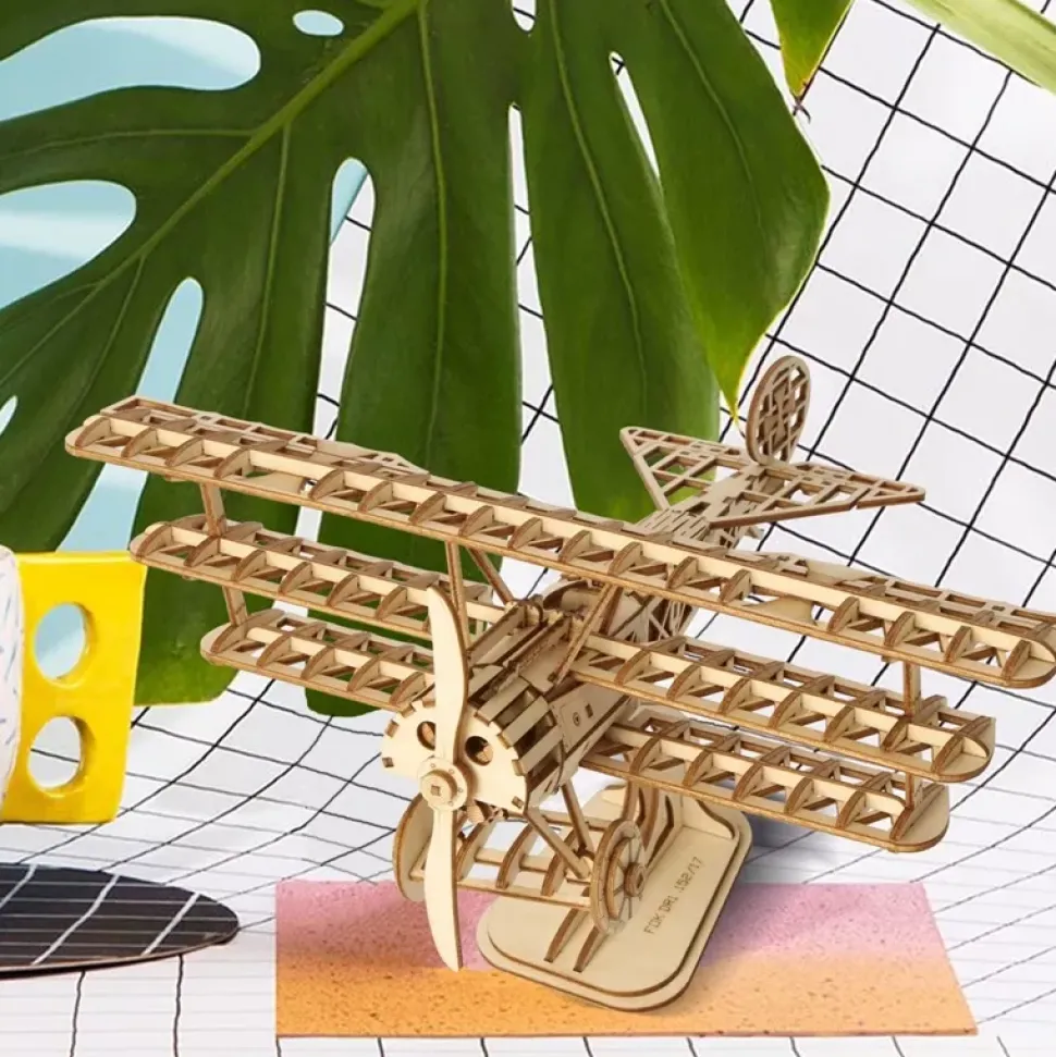 Rompecabezas de madera 3D de avión moderno diseñado para niños y adultos.