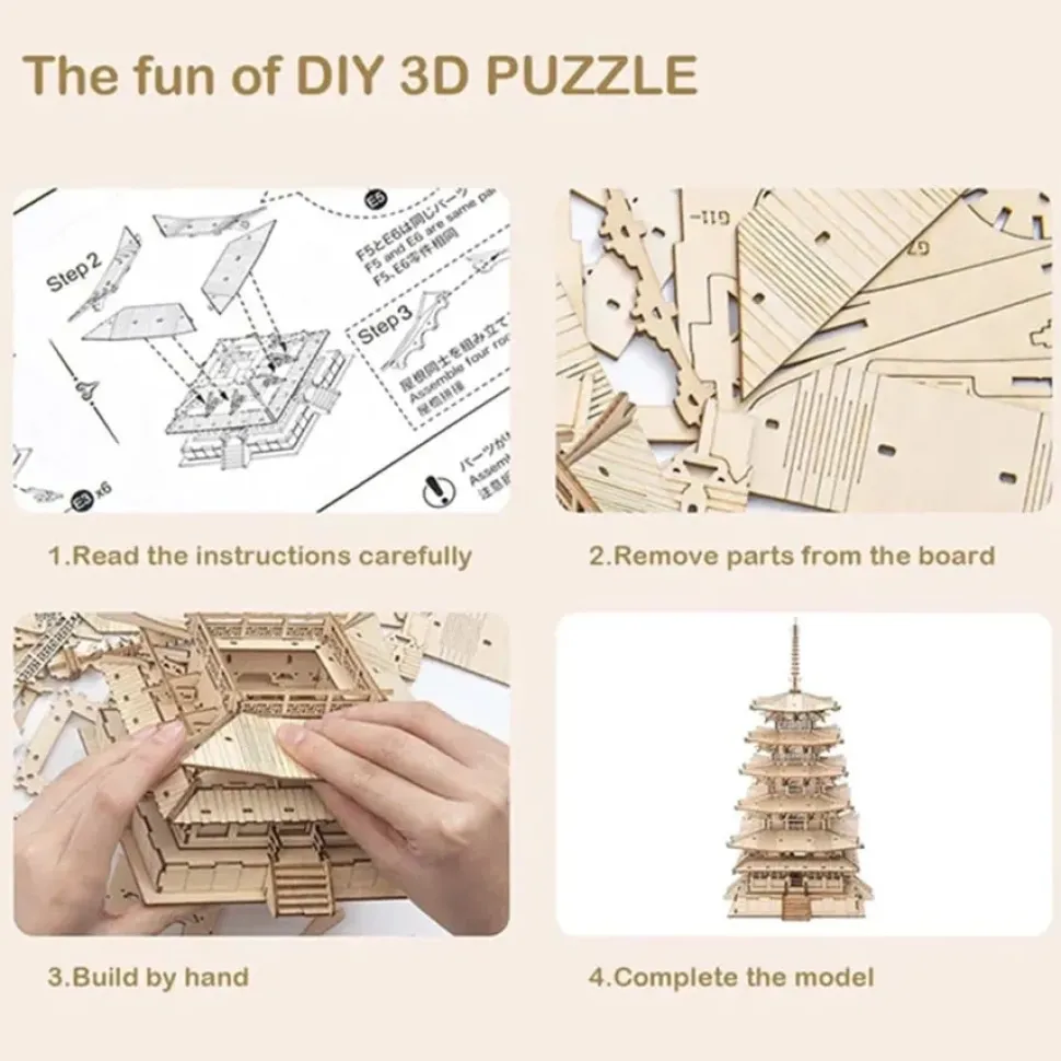 - Construye este rompecabezas de madera 3D con modelo de pagoda y aprende más sobre la arquitectura asiática.