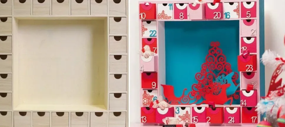 Calendariode adviento en madera se puede decorar fácilmente a su gusto y deseos.