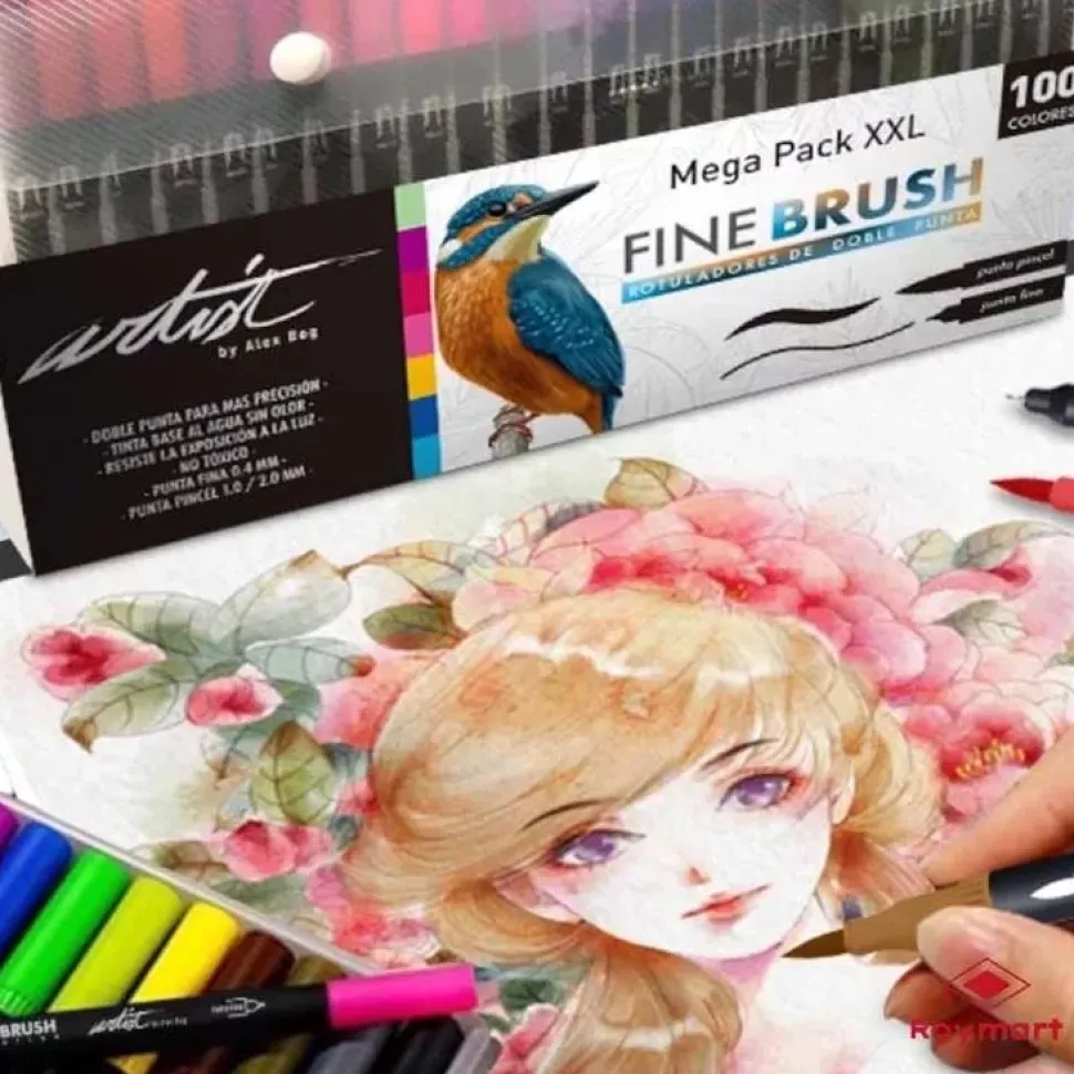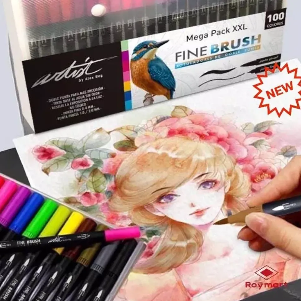 Megapack XXL 100 Rotuladores Fine Brush Doble Punta Alex Bog