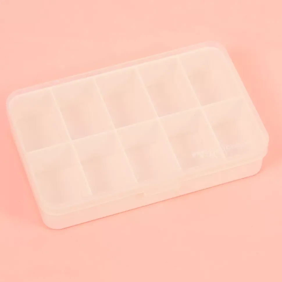 - Se acabó perder adornos o piezas pequeñas. O tener las lentejuelas desperdigadas. Con esta caja con 10 compartimentos tendrás todo organizado y a la vista para encontrar lo que necesitas rápidamente.