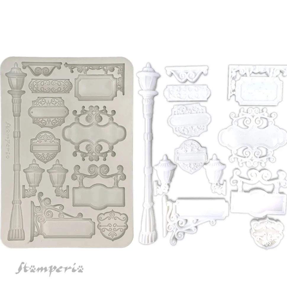Molde de silicona Farolas y Carteles Art of Travelling Stamperia A5