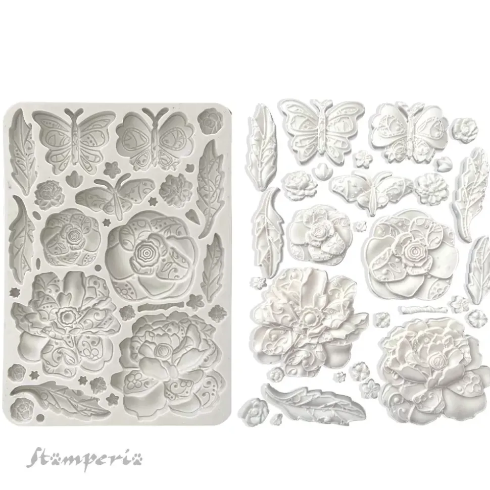 Molde de silicona Mariposas y Flores Old Lace Stamperia
