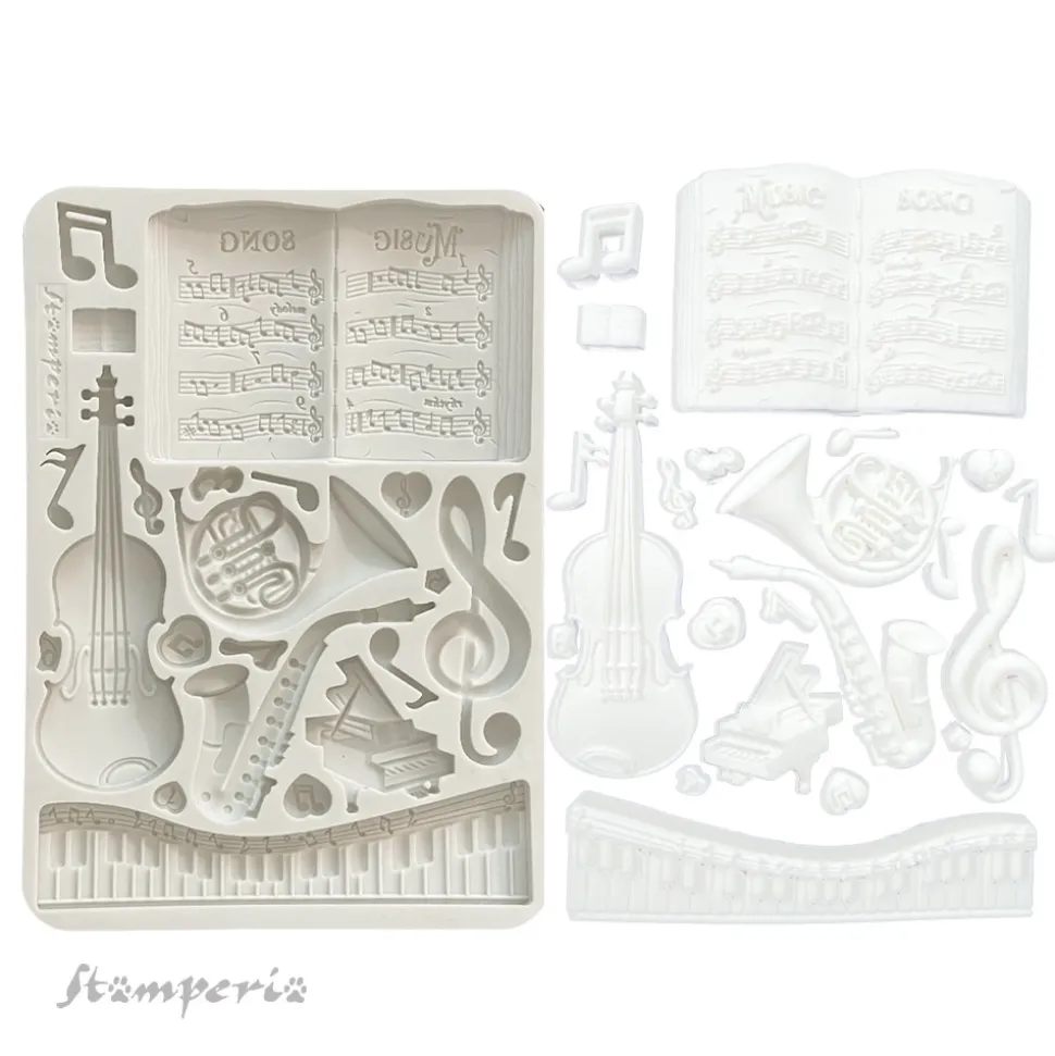 Music es la nueva colección de Stamperia. En ella los protagonistas son los instrumentos y las partituras, con ilustraciones de estilo vintage que combinan turquesas y marrones. La armonía de la colección inspira a la creatividad con intrincados detalles y hermosos complementos, para crear proyectos únicos y atemporales. Descubre sus papeles y disfruta con todos sus complementos, como die-cuts, stencils, sellos y mucho más. ¡Descubre ya Music!