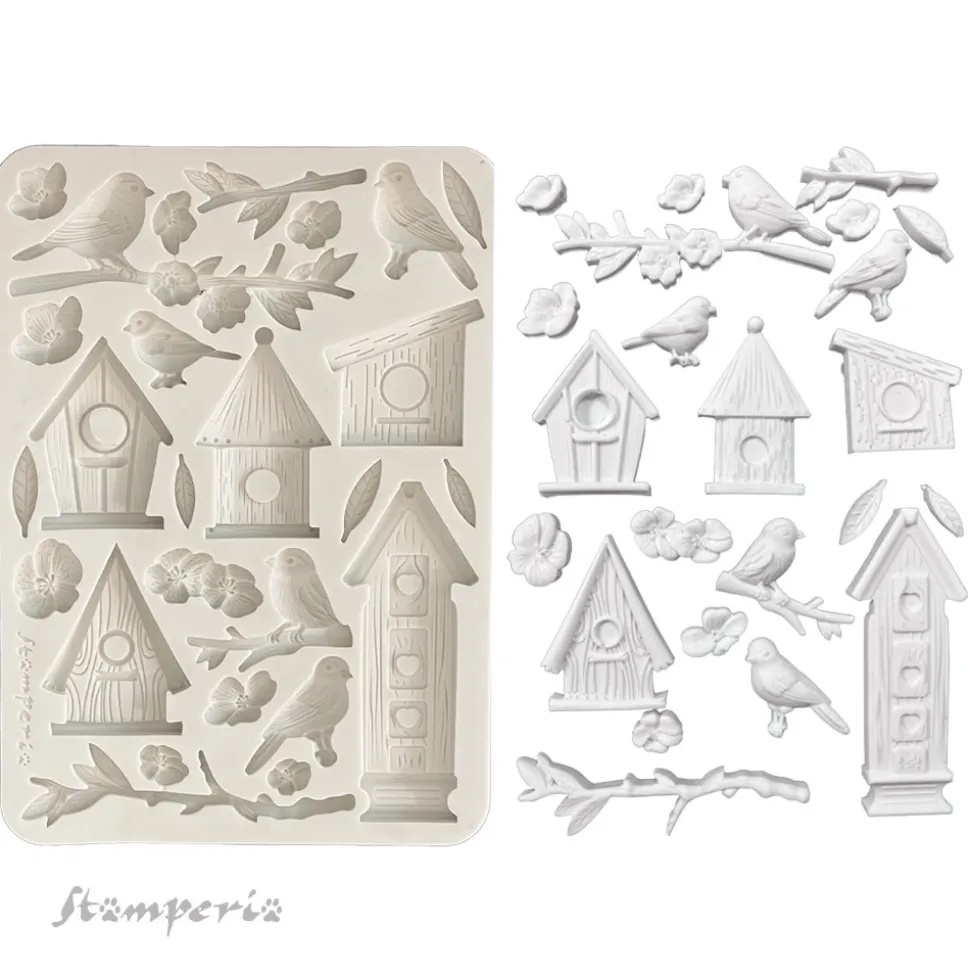 Molde de silicona Nidos y pájaros Dewdrops Stamperia A5