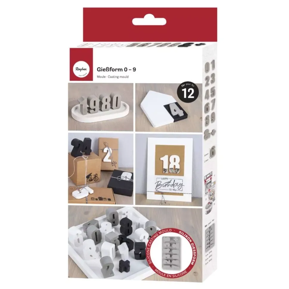 - Molde de silicona para realizar piezas en forma de números con cemento creativo, hormigón para joyas, polvo para moldear Raysin, resina para moldear y cera (no apto para alimentos).