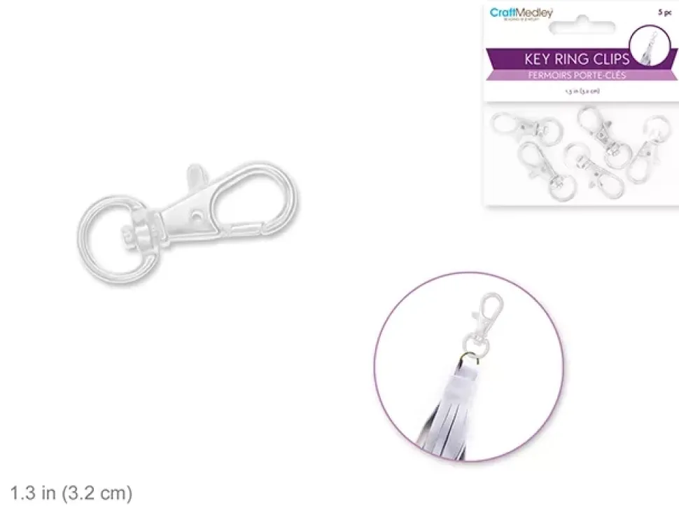 - Conjunto de 5 mosquetones plateados con base giratoria.