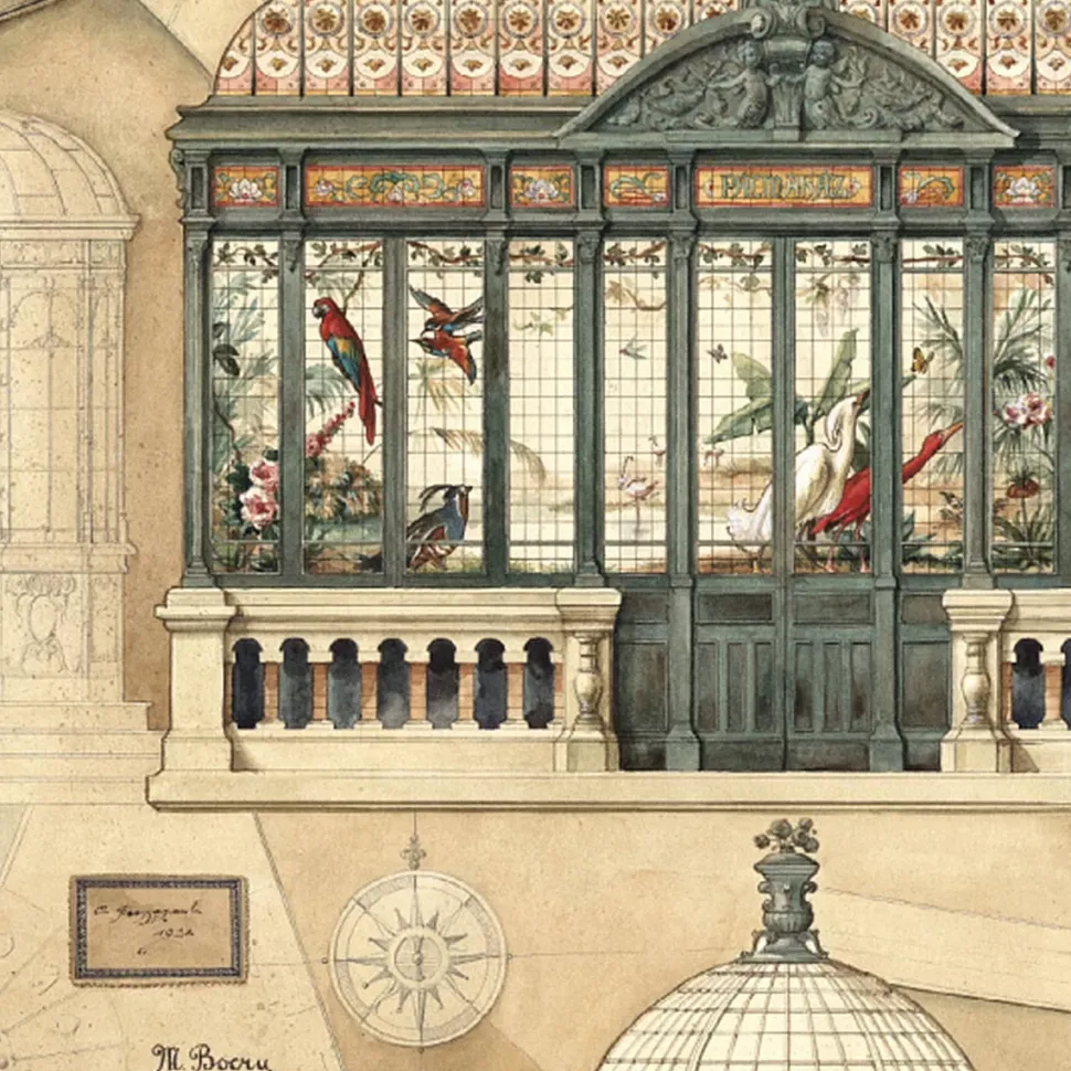 - Papel de alta gama impreso con estampado de una gran jaula de pájaros estilo vintage.