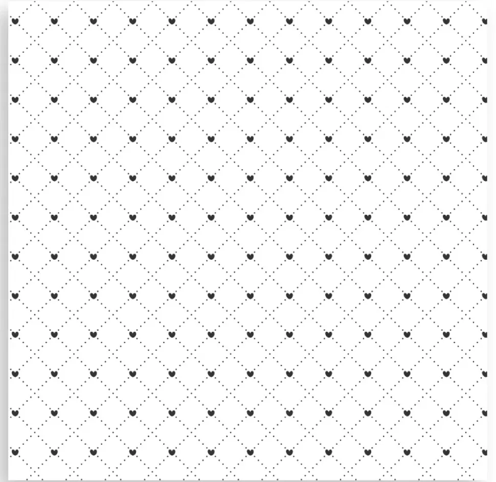 - – Papel de acetato con impresión de un patrón de rombos y corazones en blanco y rosa.