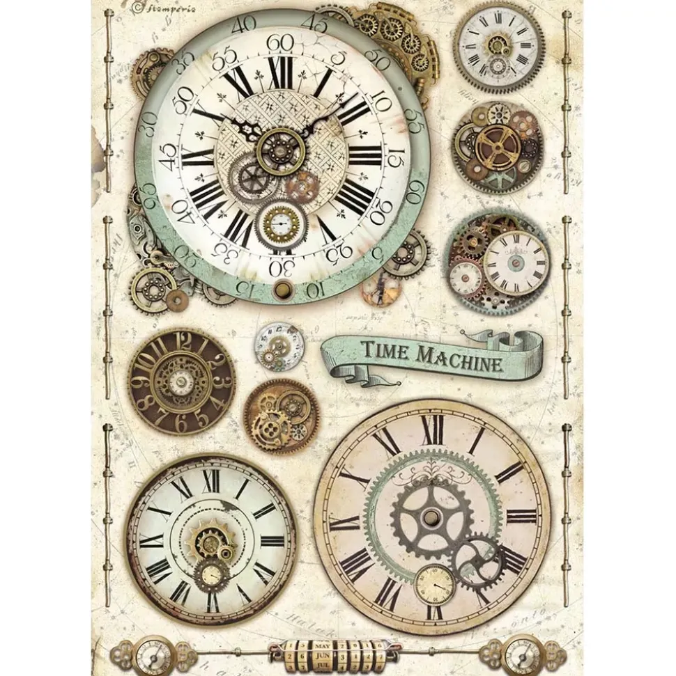 Papel de arroz Reloj Voyages Fantastiques Stamperia 21x30cm