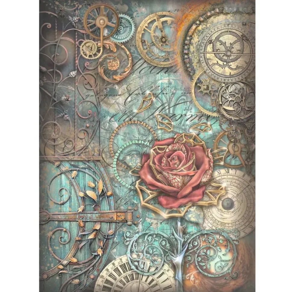 Papel de arroz Rosa Mecánica Sir Vagabond in Fantasy World Stamperia 21x30cm