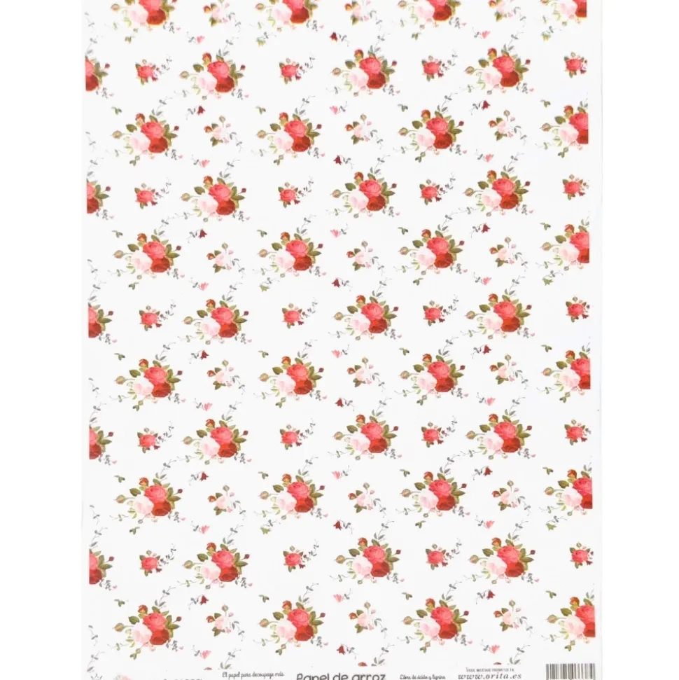 El papel de arroz es igual de fino que una servilleta, pero mucho más resistente. Su composición lleva unas pequeñas fibras, lo que lo hace más atrativo su uso en la decoración de todo tipo de objetos. Su decoración ya viene impresa con motivos especiales, que podemos utilizar para objetos de madera, cristal, papel, tejas, telas, acetatos, escayola, porcelana o cualquier otro soporte que se nos ocurra. Se pega con cualquier pegamento utilizado con la técnica de decoupage, o con el médium para servilleta.