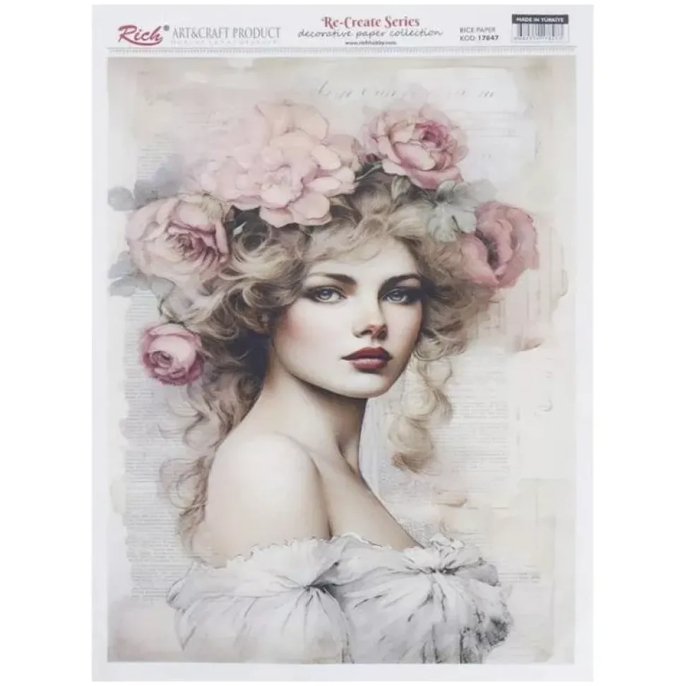 - Papel de arroz decorado con un gramaje muy bajo cuya ligereza y adaptabilidad a casi cualquier superficie lo hace apto para cualquier técnica de decoupage.