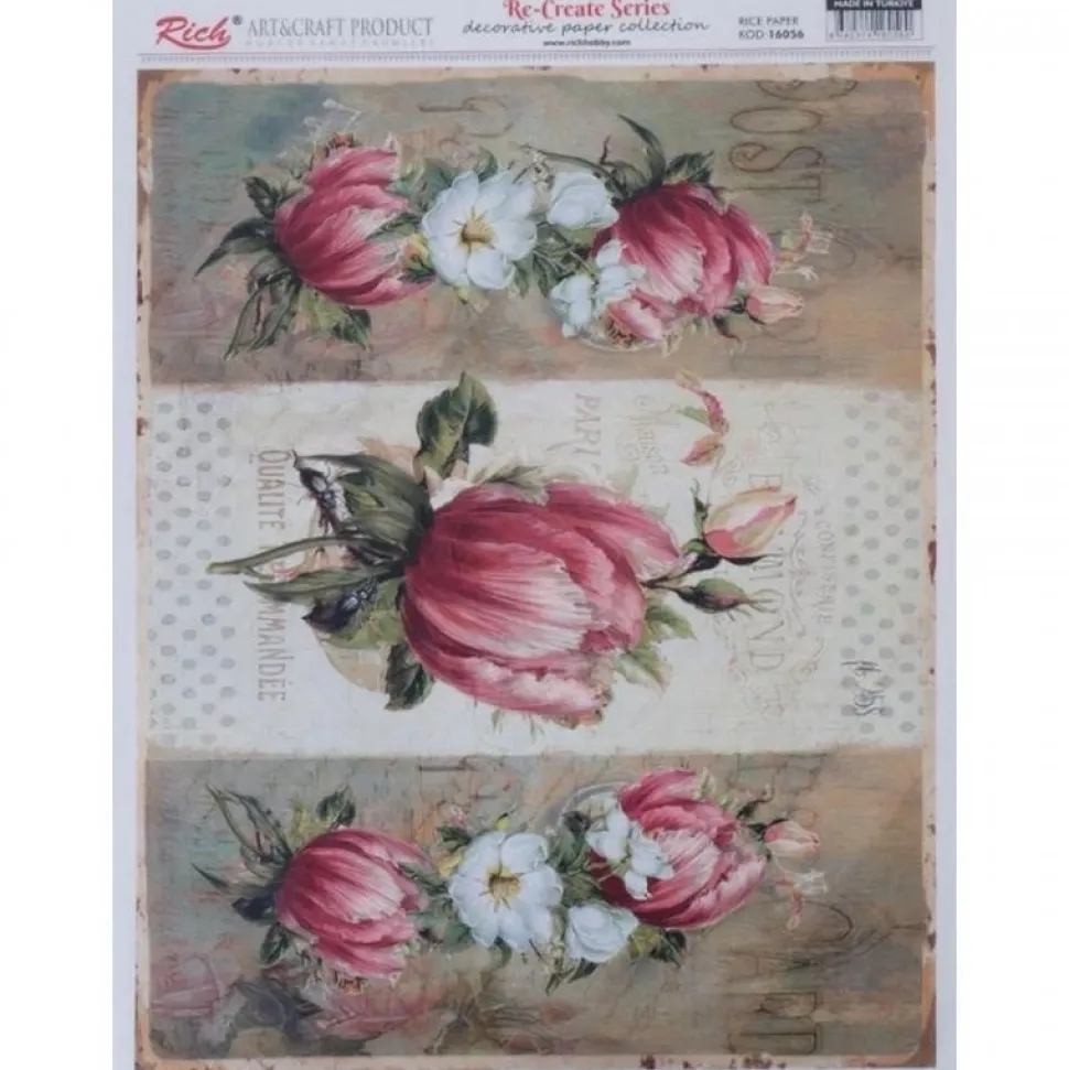 Papel de Arroz Tulipanes Rosas Rich 29x42cm