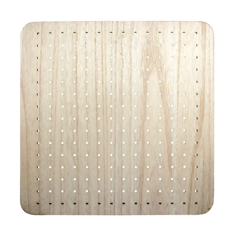 - Incluye una tabla de madera cuadrada con agujeros equidistantes llamada pegboard.