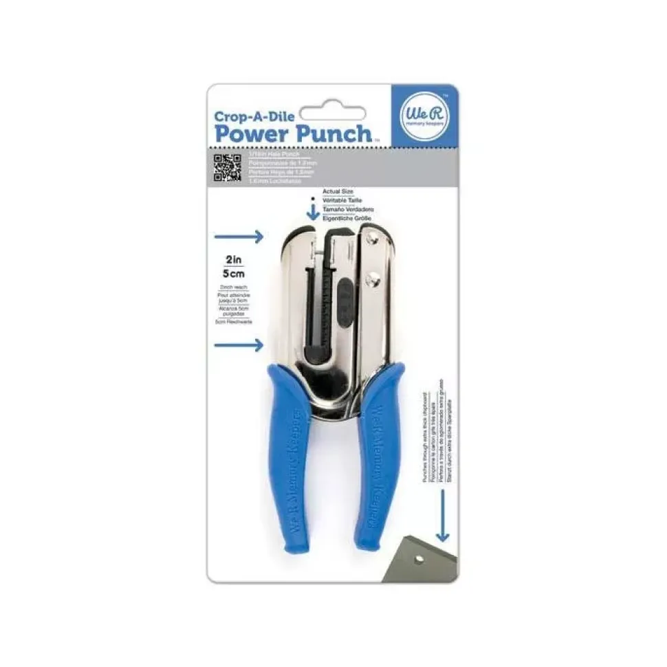 Perfora fácilmente papel, chipboard, tapas de libro, plástico, estaño fino, tela, cuero, foam y y otros materiales con toda la colección Power Punch de We R.