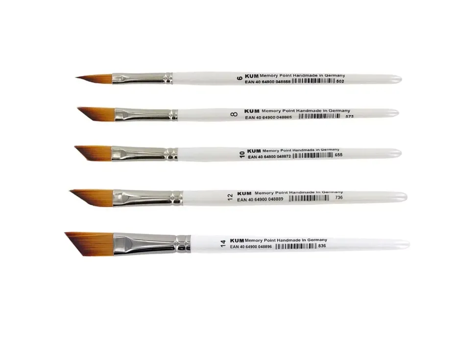 - Los pinceles KUM Memory Points tienen cerdas sintéticas con una elasticidad perfecta que absorben muy bien el color.