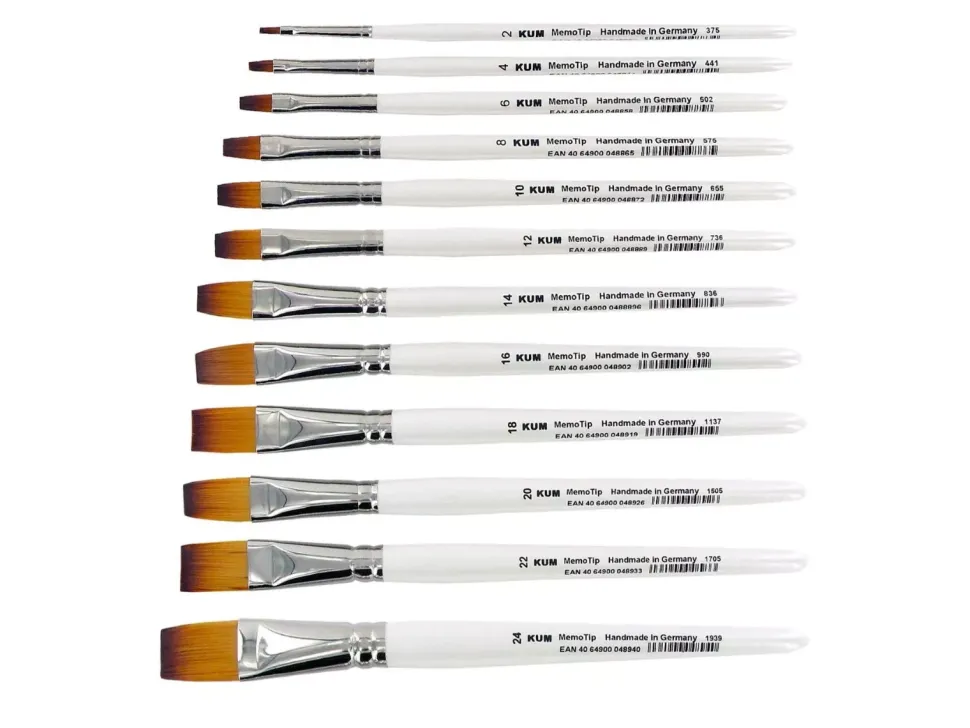 - Los pinceles KUM Memory Points tienen cerdas sintéticas con una elasticidad perfecta que absorben muy bien el color.