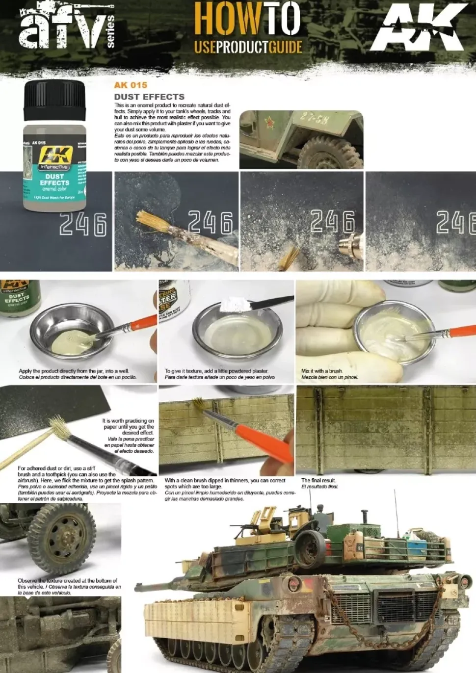 - Puedes aplicarlo con pincel para hacer salpicaduras (splashes), o acumulaciones en partes estratégicas o amplias zonas de los modelos. También se puede aplicar con aerógrafo para obtener efectos más suaves.