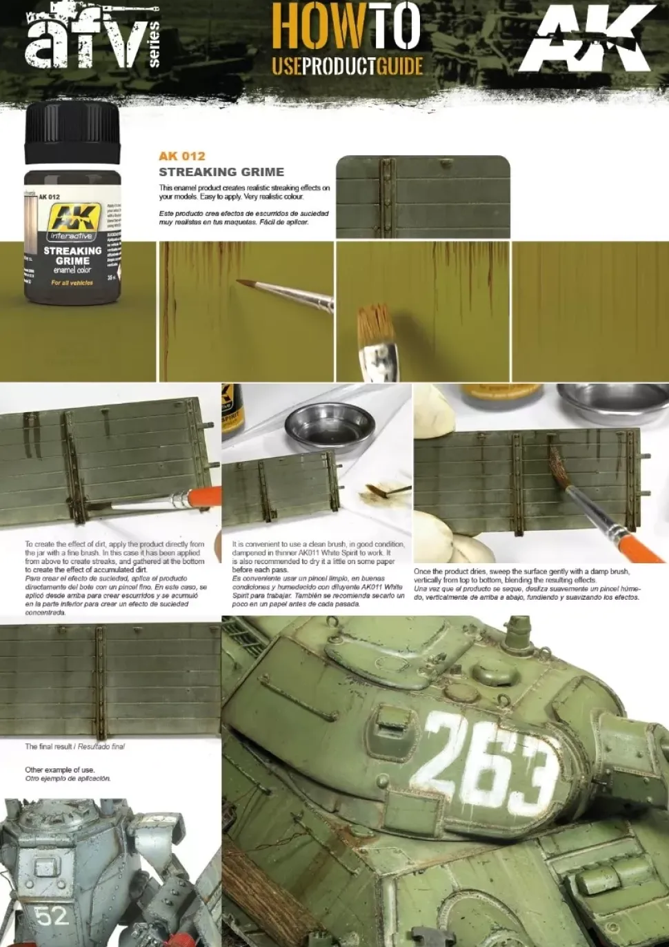 - Con este producto de base enamel y color ligeramente verdoso-amarronado, el modelista puede representar fácilmente efectos de suciedad escurrida y acumulada en cualquier tipo de maqueta.