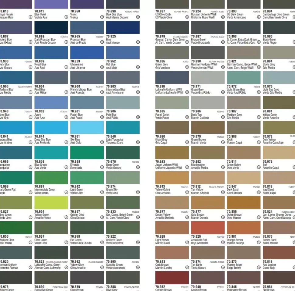 - La selección de colores es muy diversa y ofrece referencias desarrolladas por nuestros expertos para su empleo tanto en figuras históricas, como en todo tipo de vehículos, aviones y figuras militares.