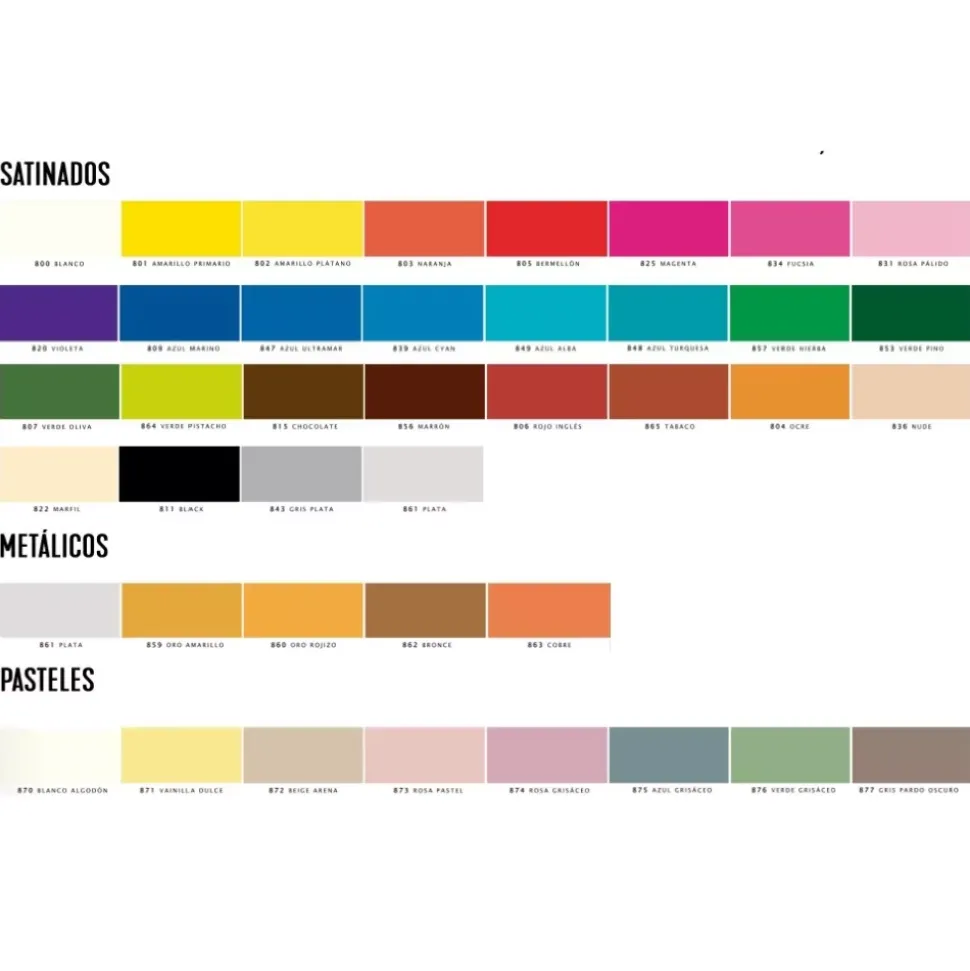 - Disponible en formato de 100 ml con acabados satinados, metalizados y pasteles.