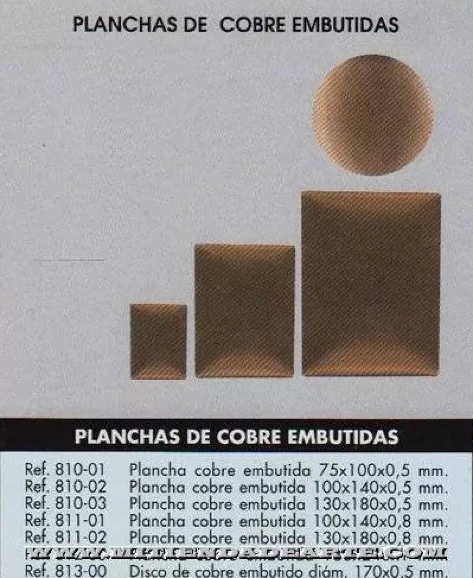 - Planchas de cobre embutidas especial para esmaltes en frío y para decoupage.