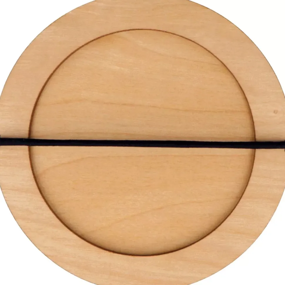 - Este complemento imprescindible se compone de 2 láminas de madera de 12 cm de diámetro y 5 mm de grosor y una cuerda para sujetar las láminas.