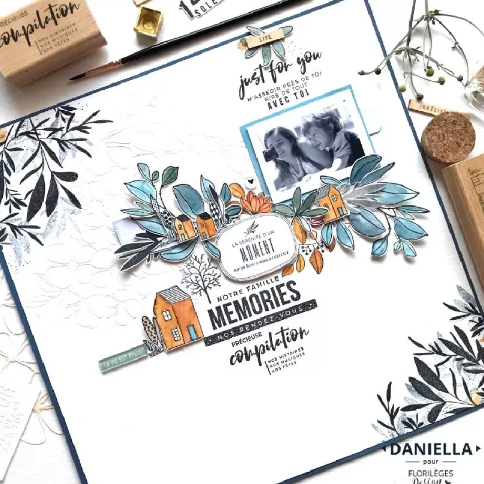 Esta nueva y otoñal colección diseñada por Daniella Tritsch para Florilèges Designs es una poesía que mezcla el follaje y los elementos gráficos perfecta para creaciones llenas de encanto. Sus cálidos tonos beige, tierra sombra tostada, mezclados con los fríos azules son una fiel representación del otoño. Las ilustraciones de hojas combinados con motivos contemporáneos darán un nuevo estilo a tus proyectos de scrapbooking.