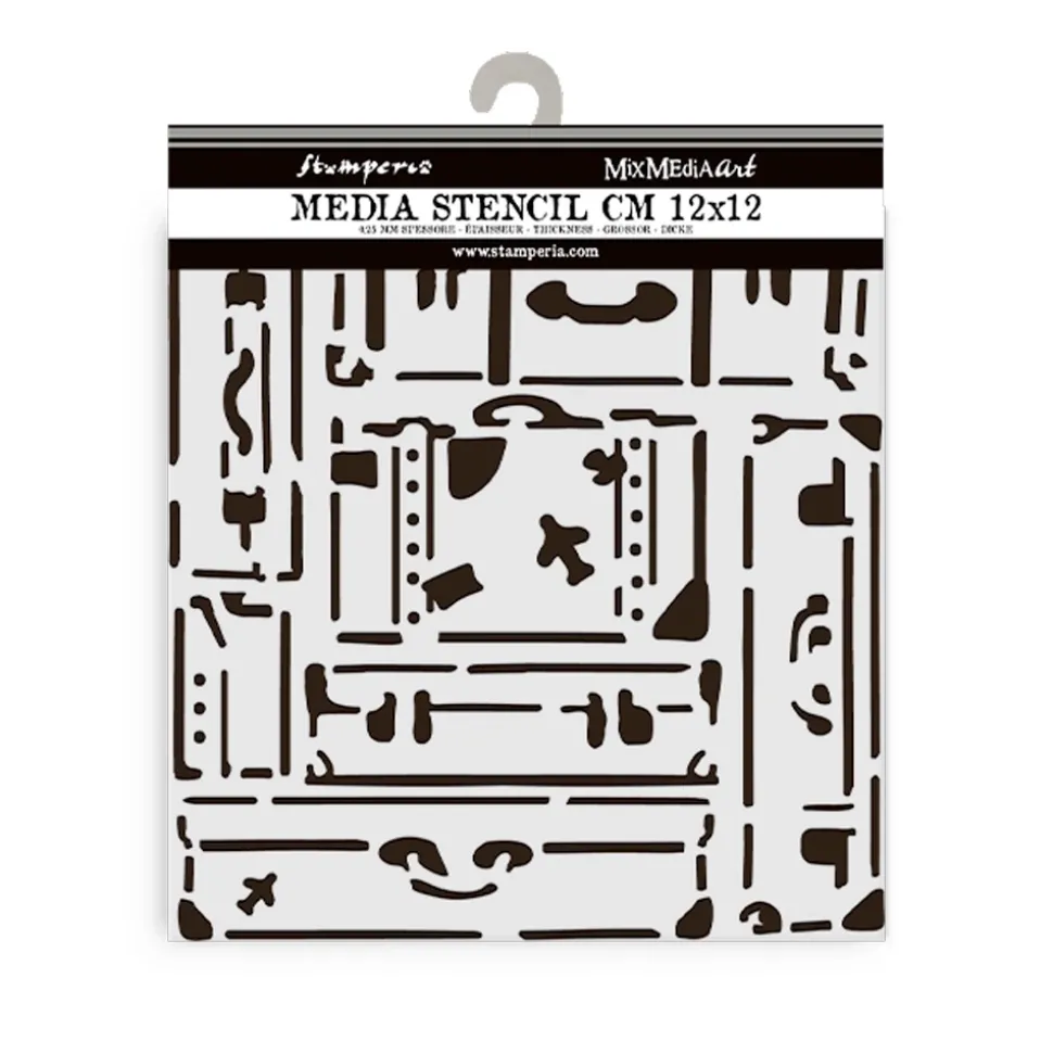 - Plantilla perfecta para realizar máscaras con tintas, ceras, gelatos, gesso, tiza o acrílico. Para proyectos de Scrapbooking y Mixed Media.