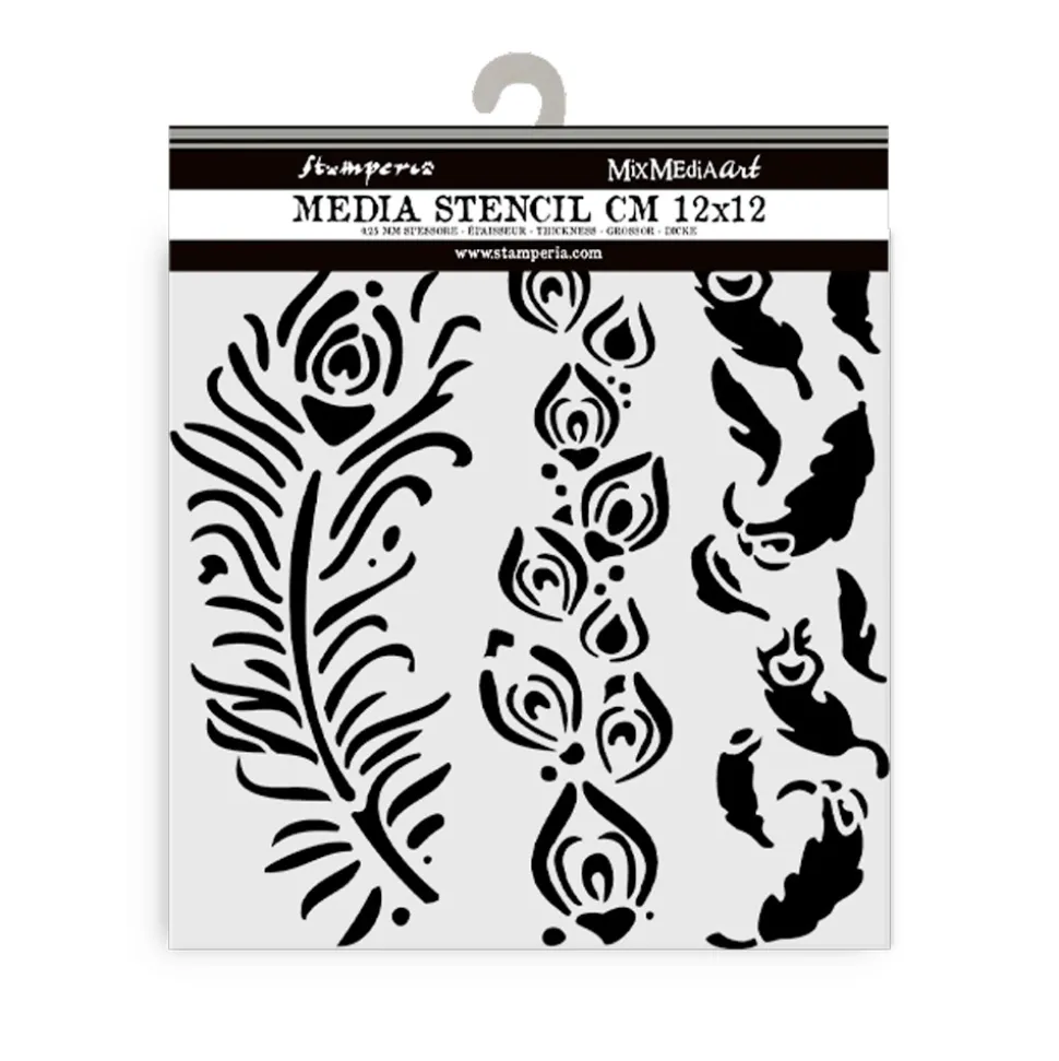 Plantilla de stencil Plumas Masquerade Stamperia 12x12cm