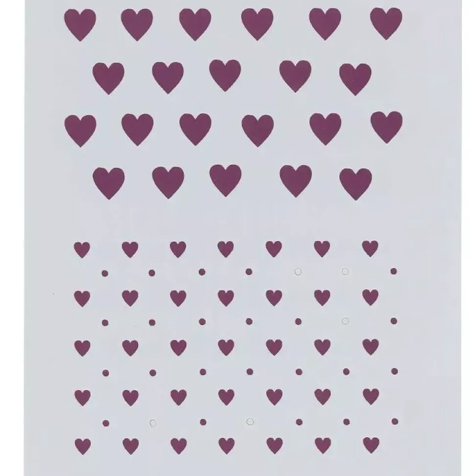 Diseños en acetato de motivos clásicos y actuales para la técnica del estarcido, de corazones de diferentes tamaños.