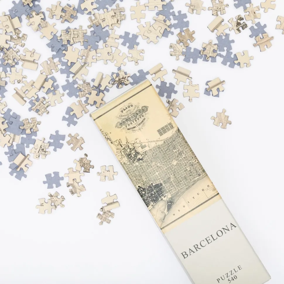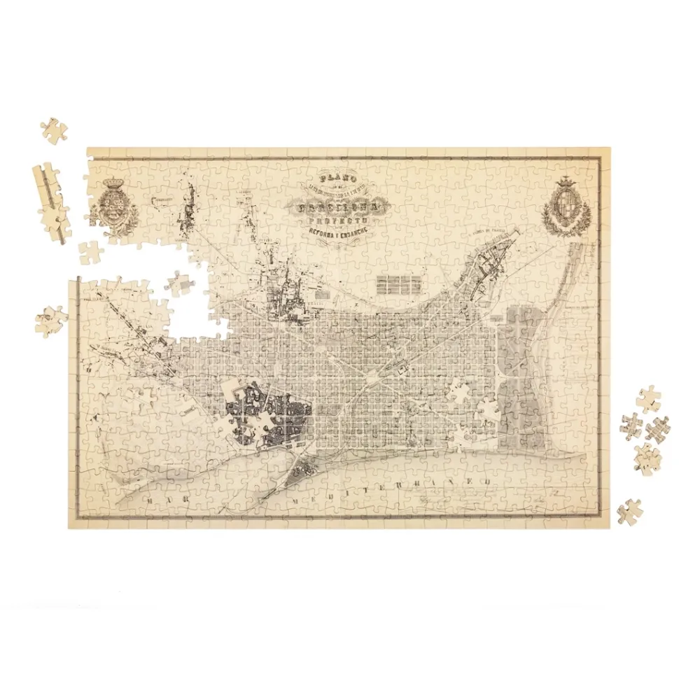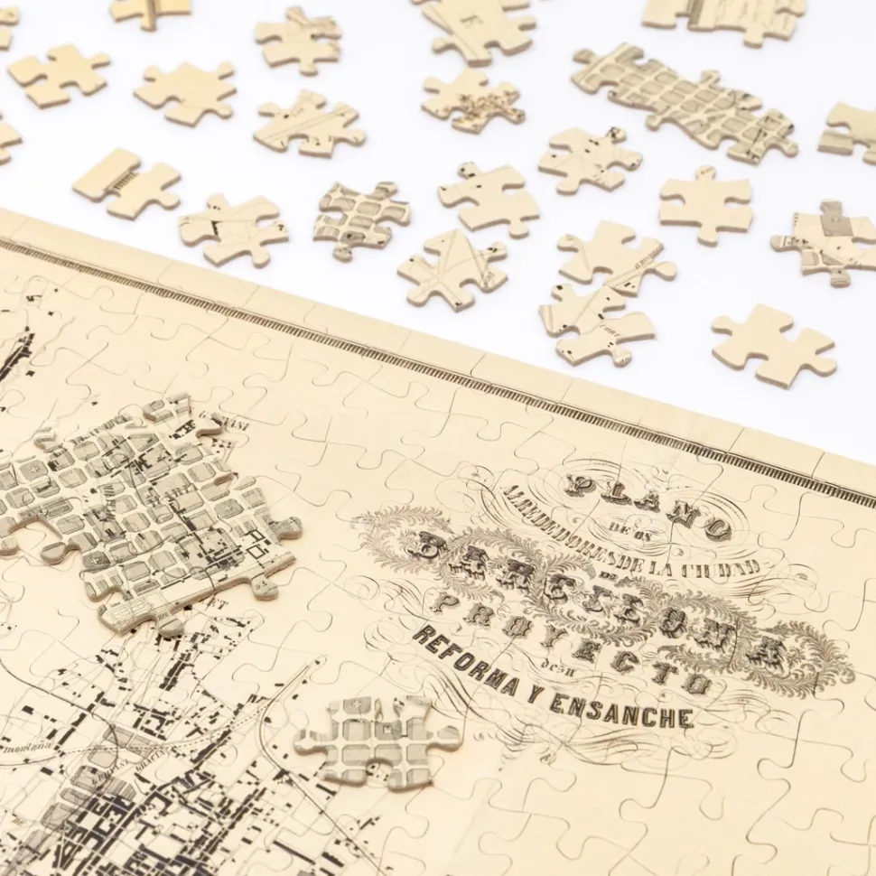 Este rompecabezas de alta calidad reproduce un mapa de la ciudad de Barcelona dibujado en 1833 por el arquitecto W. B. Clarke para la Society for the Diffusion of Useful Knowledge (Reino Unido) y publicado en un atlas por Baldwin & Cradock.