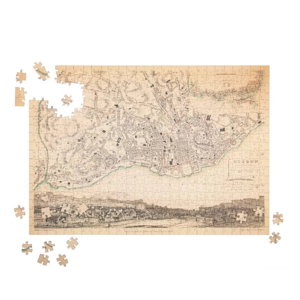 Este rompecabezas de alta calidad reproduce un mapa de la ciudad de Lisboa dibujado en 1833 por el arquitecto W. B. Clarke para la Society for the Diffusion of Useful Knowledge (Reino Unido) y publicado en un atlas por Baldwin & Cradock.