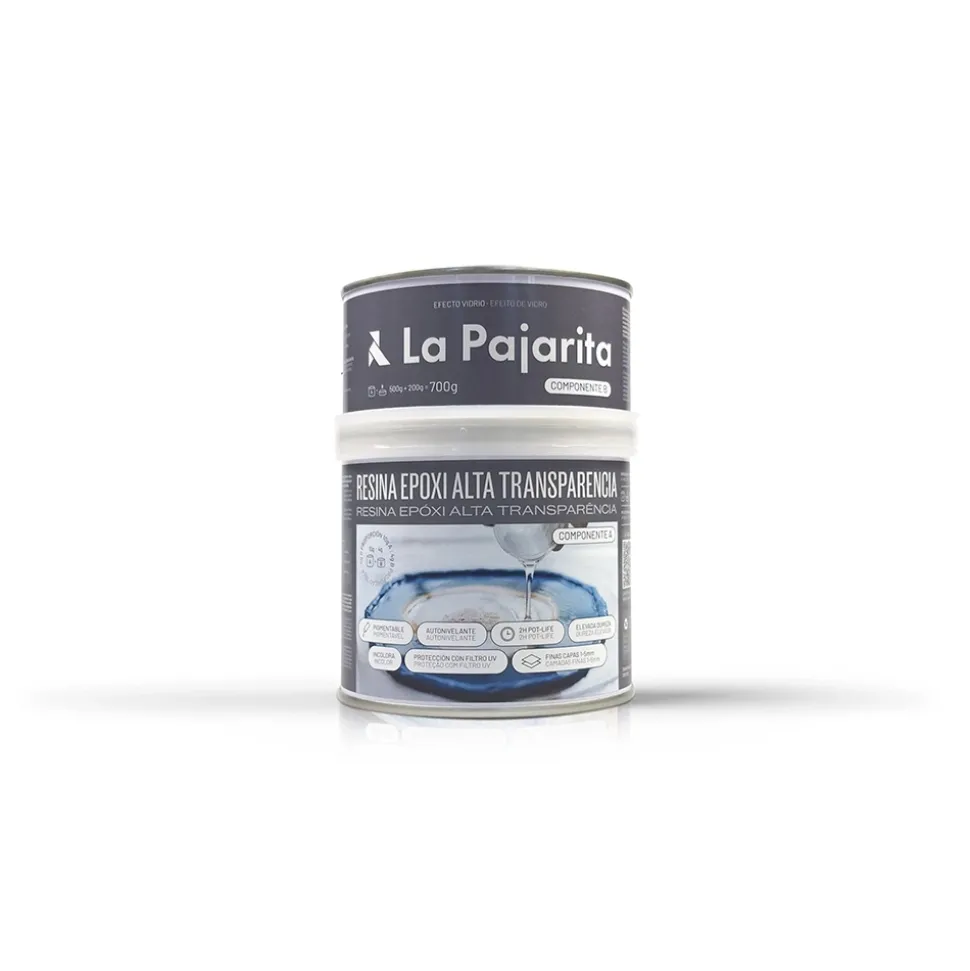 - La resina epoxi de alta transparencia es una resina incolora de dos componentes (A y B), cuya mezcla, en la proporción adecuada, consigue acabados efecto vidrio de alta durabilidad.