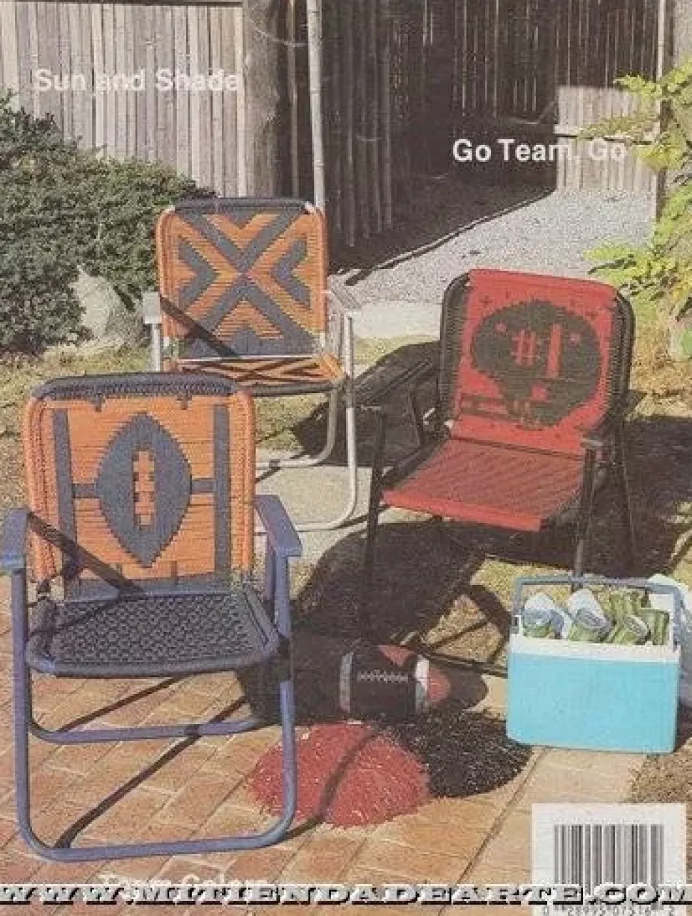 – Contiene diseños geométricos para realizar macramé para sillas.