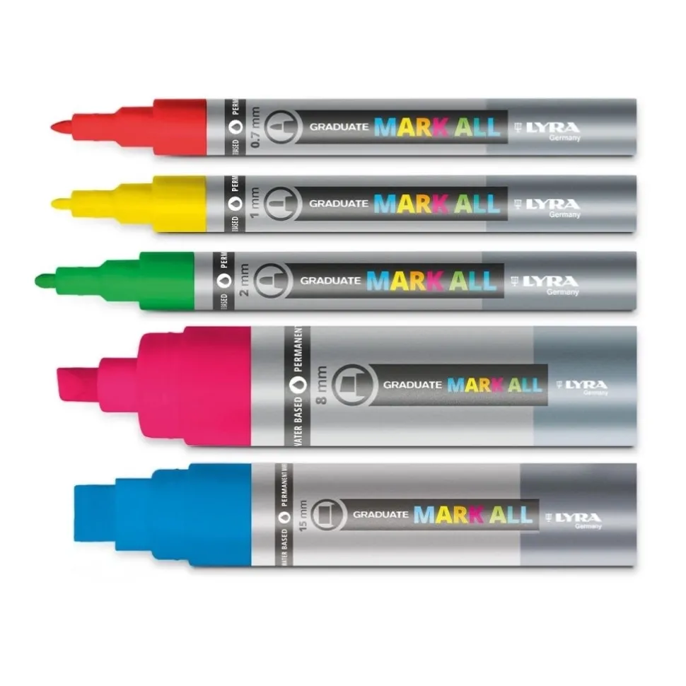 - Los rotuladores GRADUATE MARK ALL están fabricados con pintura acrílica a base de agua son ideales para pintar en cualquier superficie.
