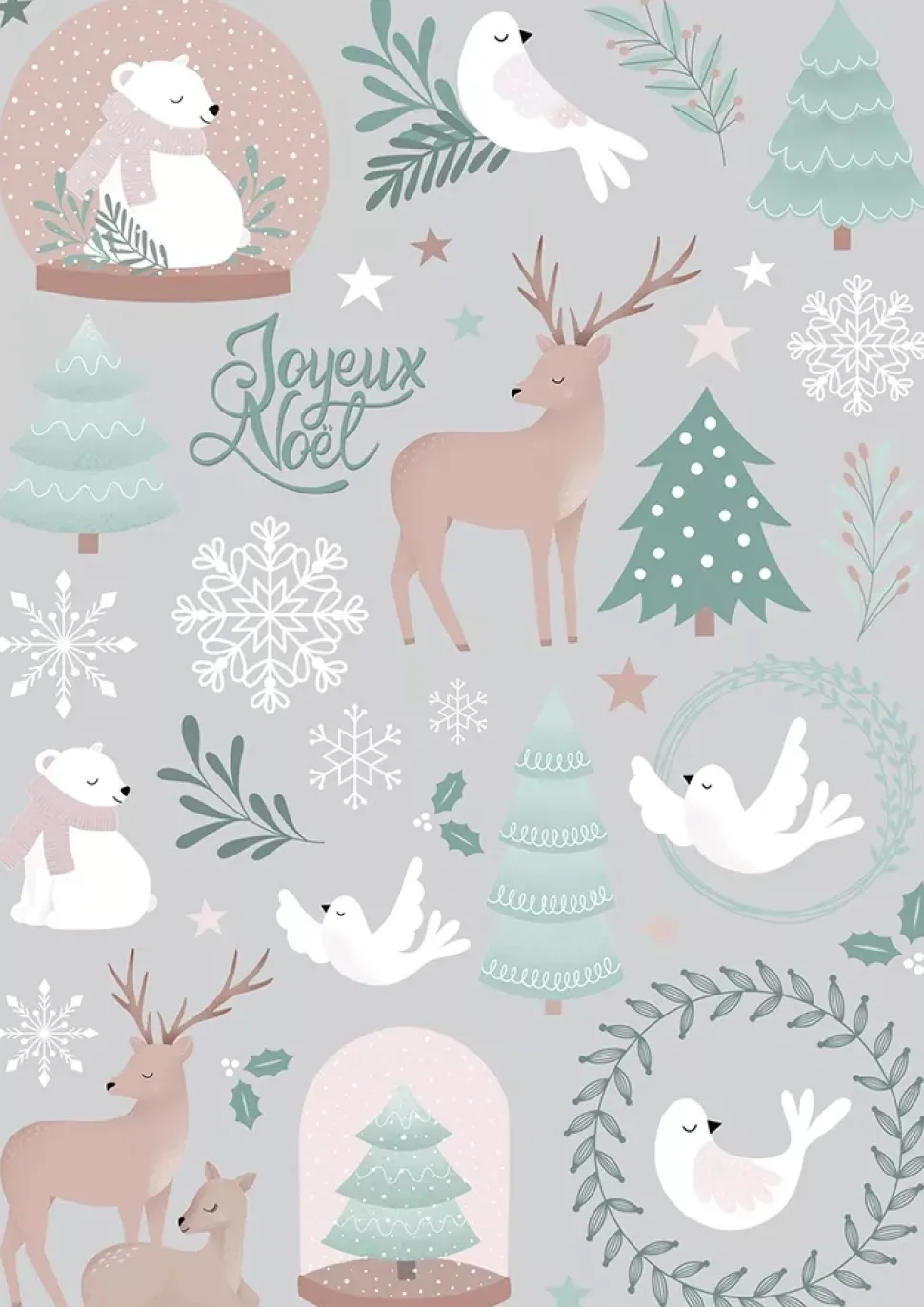 - Diseños de bellos abetos, palomas, ciervos, copitos de nieve.