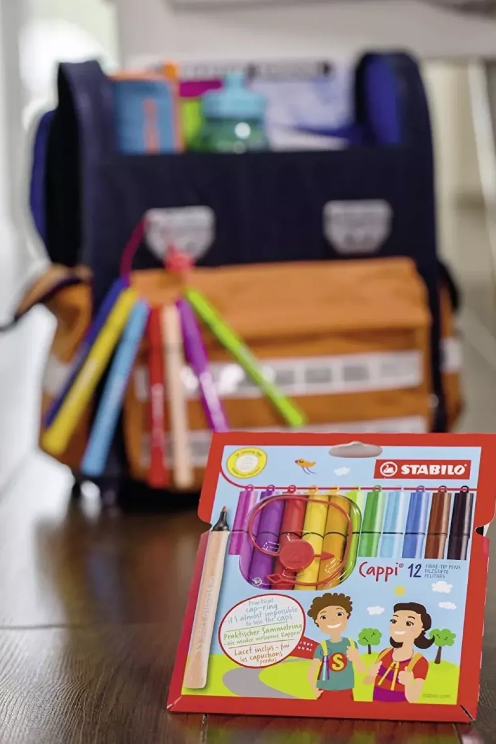 Set 12 rotuladores Cappi STABILO Los rotuladores que se secan cuando se quedan sin tapón es siempre una molestia. Con una anilla común en todos los tapones, los rotuladores STABILO Cappi hacen que guardarlos sea mucho más fácil. Estos rotuladores con tinta lavable en colores vibrantes permiten crear multitud de imágenes en la escuela o en casa. Un agarre ergonómico y una punta media robusta (con un ancho de línea de aproximadamente 1 mm) permiten horas de diversión creativa sin ningún tipo de esfuerzo en las manos. Los tapones del rotulador llevan una anilla que facilita la unión entre ellos mediante una cuerda de plástico y hace imposible perderlos. La original forma del rotulador impide que ruede. Zona de agarre ergonómica ideal para la mano de los niños. Tinta fácilmente lavable. Puede estar 24 horas destapado sin secarse. Incluye 12 colores. Marca: STABILO